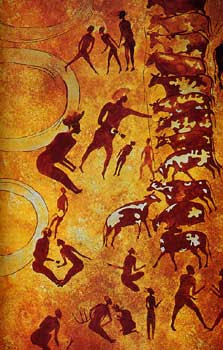Veja acima uma das raras figuras de cavernas onde o homem já estava se sedentarizando. Até os animais precisavam de abrigos "sedentários" nos estábulos